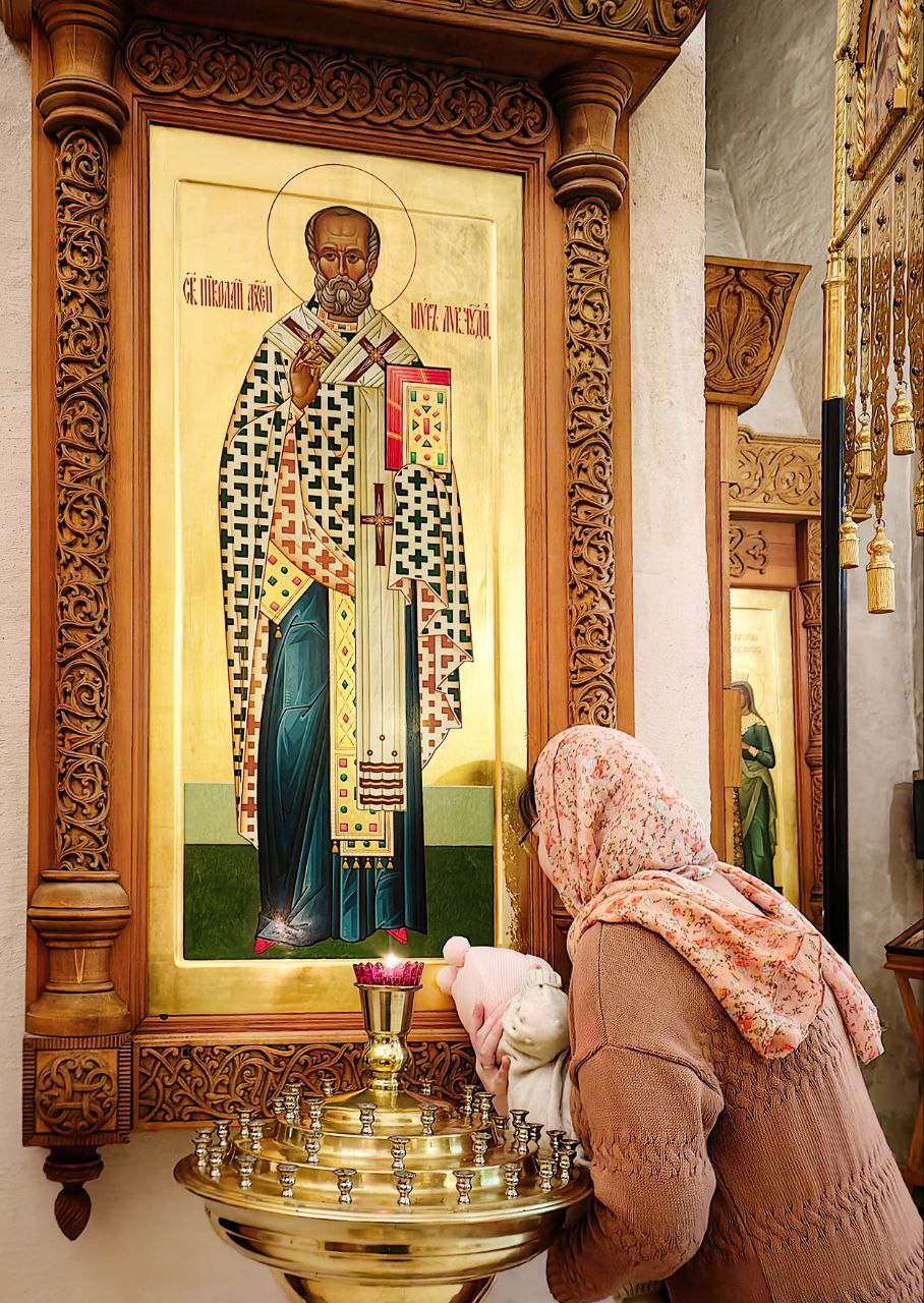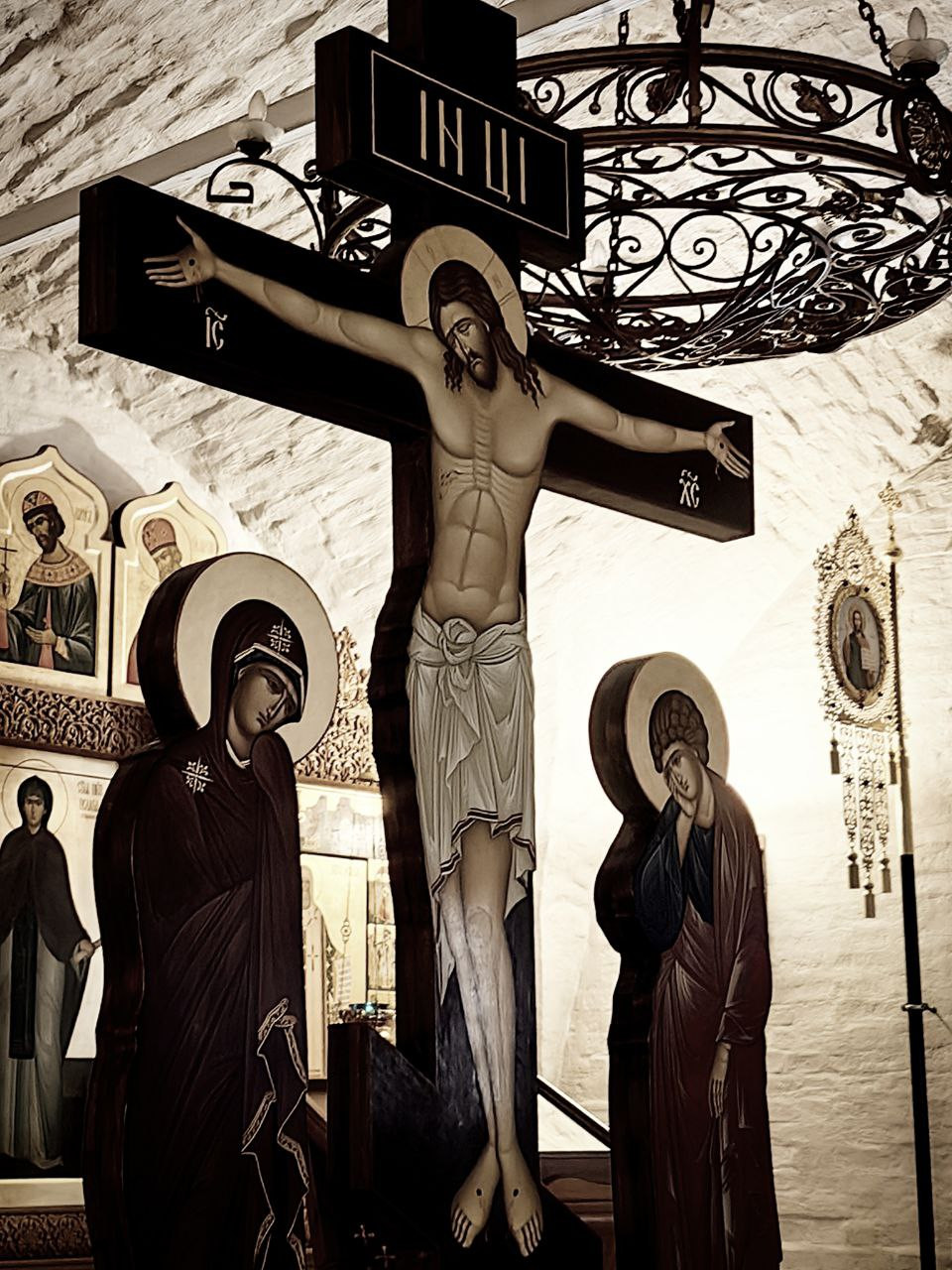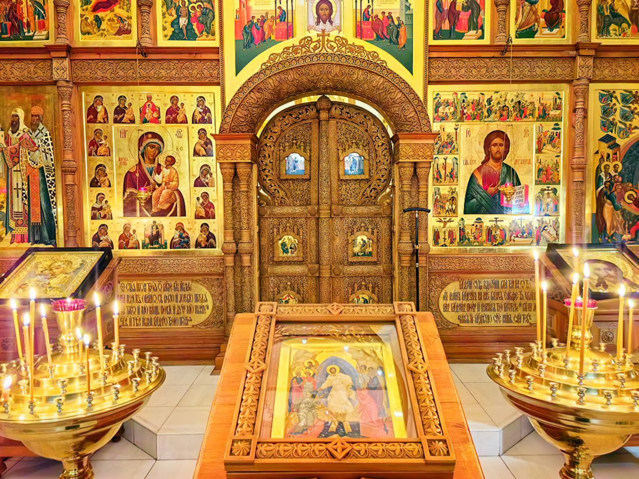 Чтобы перемещаться 3D туру, нажимайте на специальные метки со стрелками. Фото икон можно рассмотреть вблизи, нажав на метку «фотокамера», рядом.