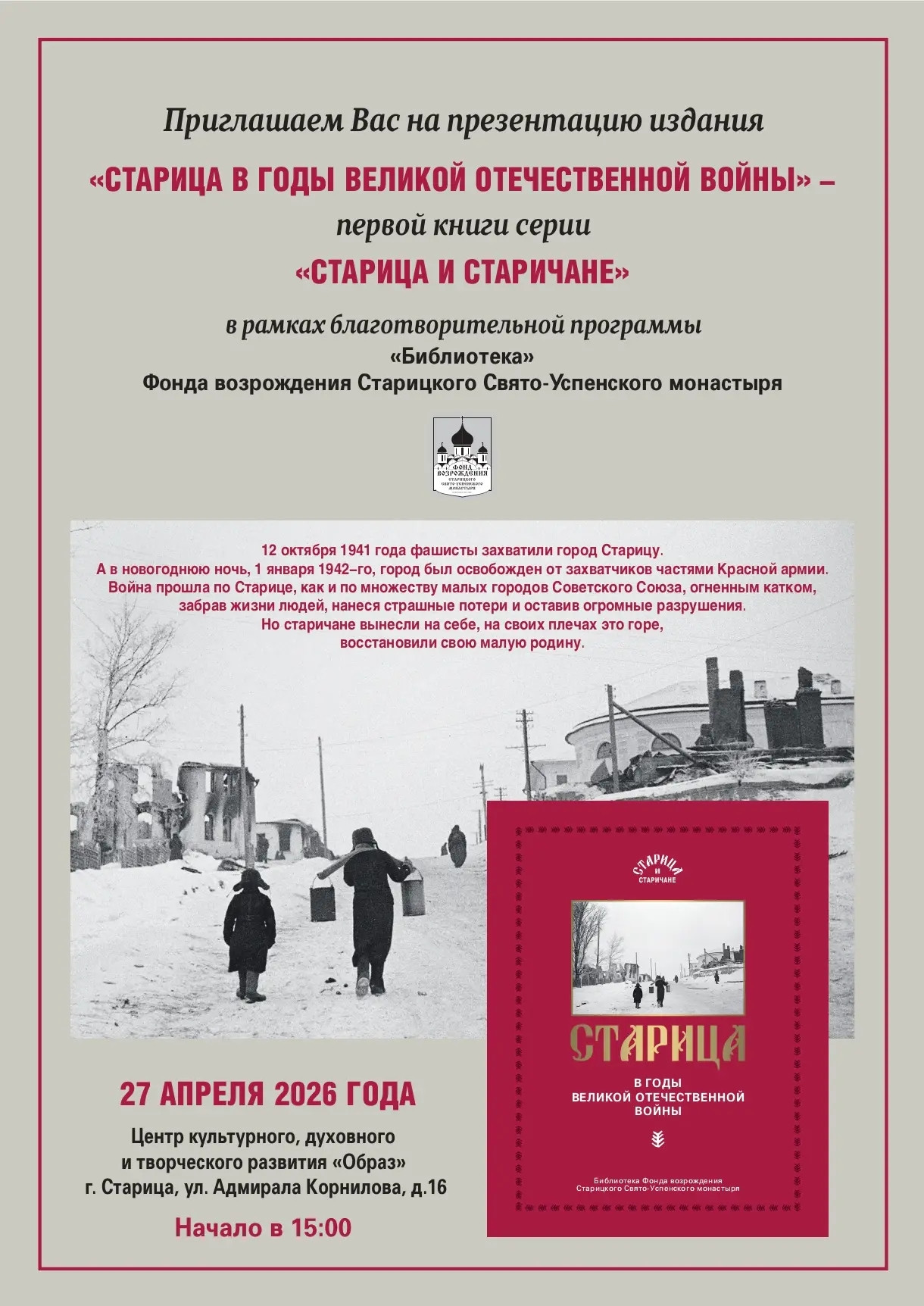 Идея возрождения Успенского монастыря в г. Старице Тверской области возникла у будущих Учредителей Фонда после первого же посещения монастыря – в сентябре 2001 года. В то время древнейшая обитель Верхневолжья пребывала в состоянии столь удручающем, что практически ничто не напоминало о былом величии и значении ее как одного из центров православной духовности.
