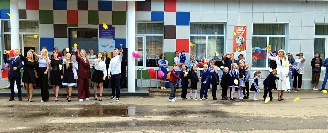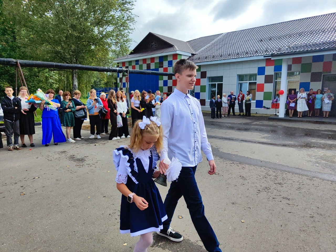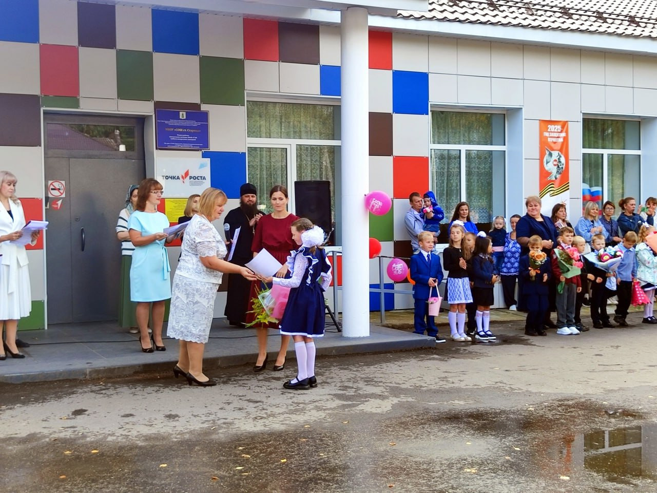 На школьном дворе собрались ученики, учителя и родители. Звучали поздравления, приветственные слова директора школы, а также тёплые пожелания от почётных гостей.