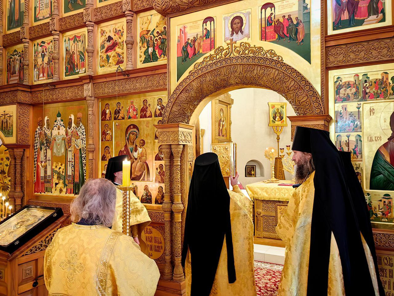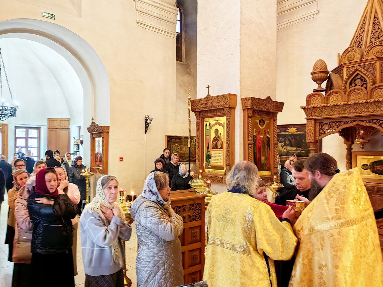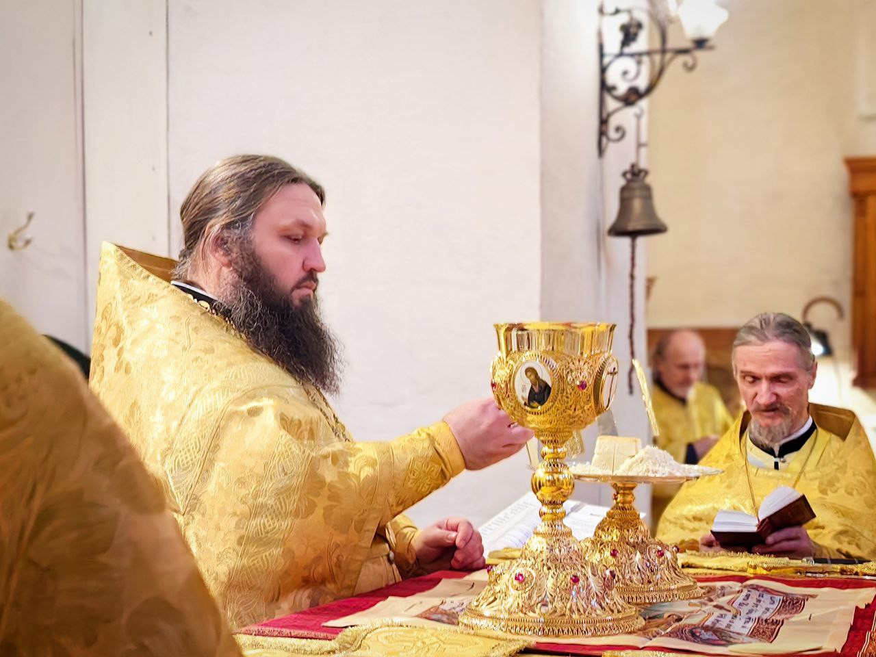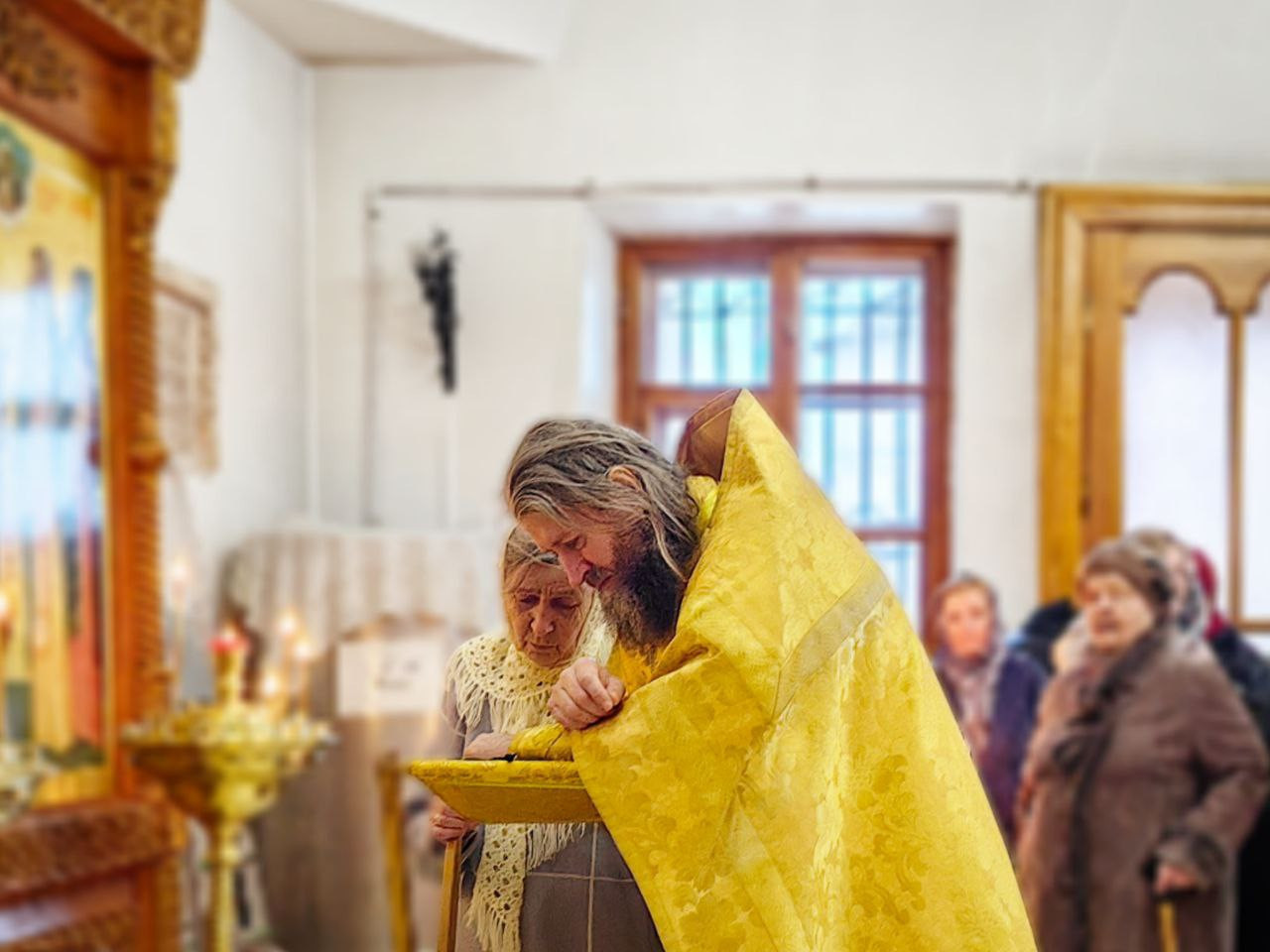 Обратившись к присутствующим в храме со пастырским словом, наместник обители поздравил собравшихся с воскресным днем, причастников — с принятием Святых Христовых Таин.
