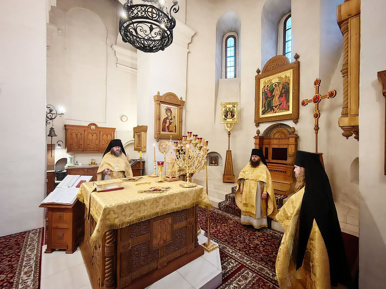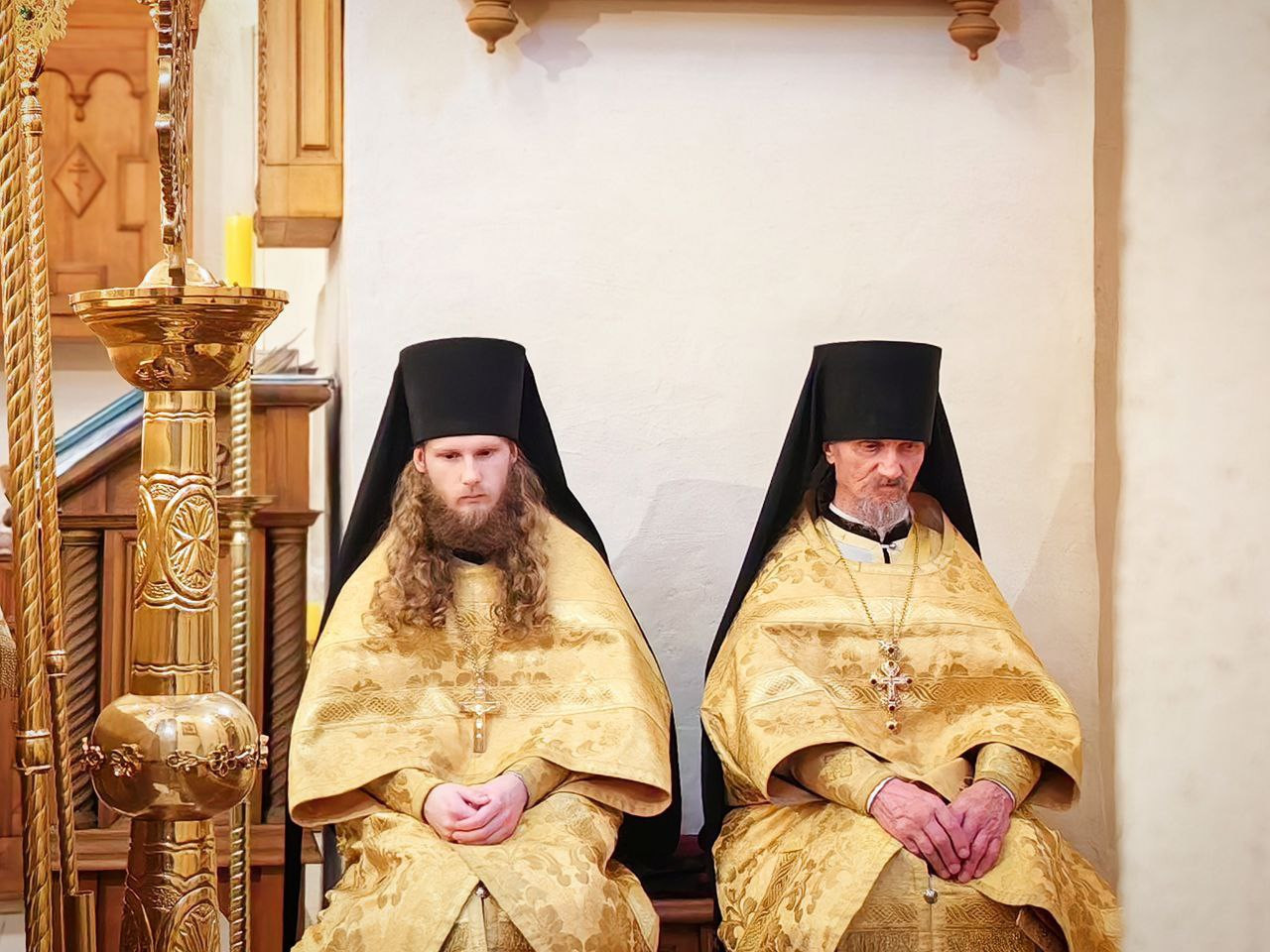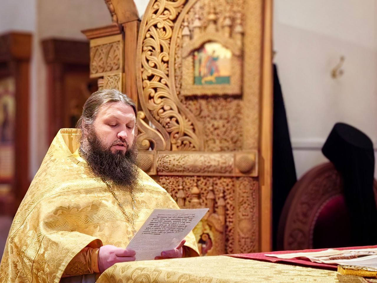Обратившись к присутствующим в храме со пастырским словом, наместник обители поздравил собравшихся с воскресным днем, причастников — с принятием Святых Христовых Таин.