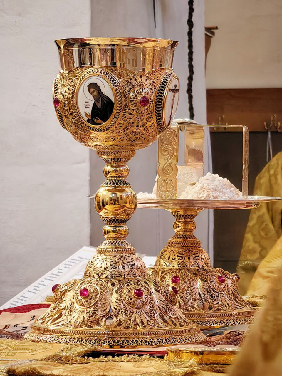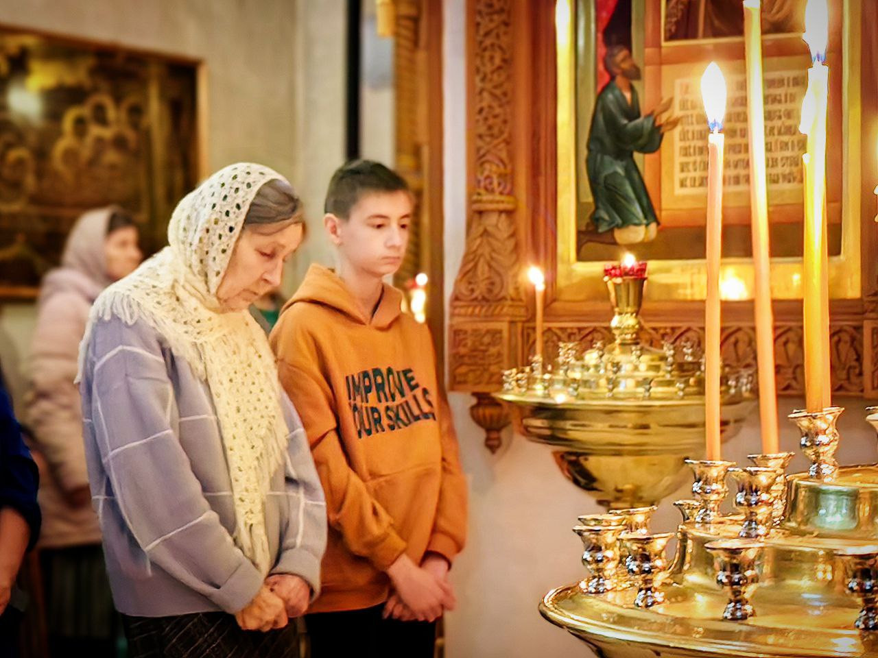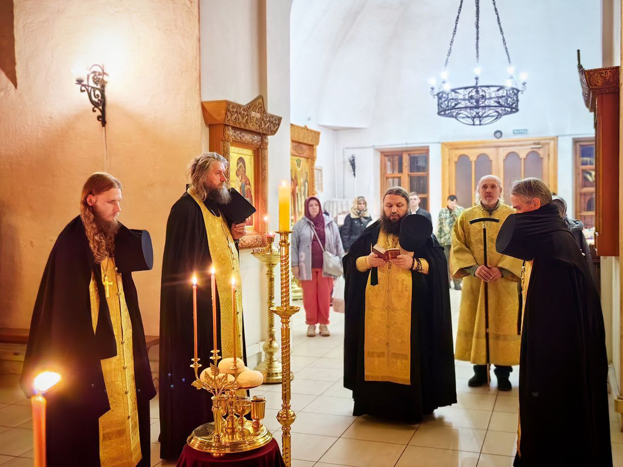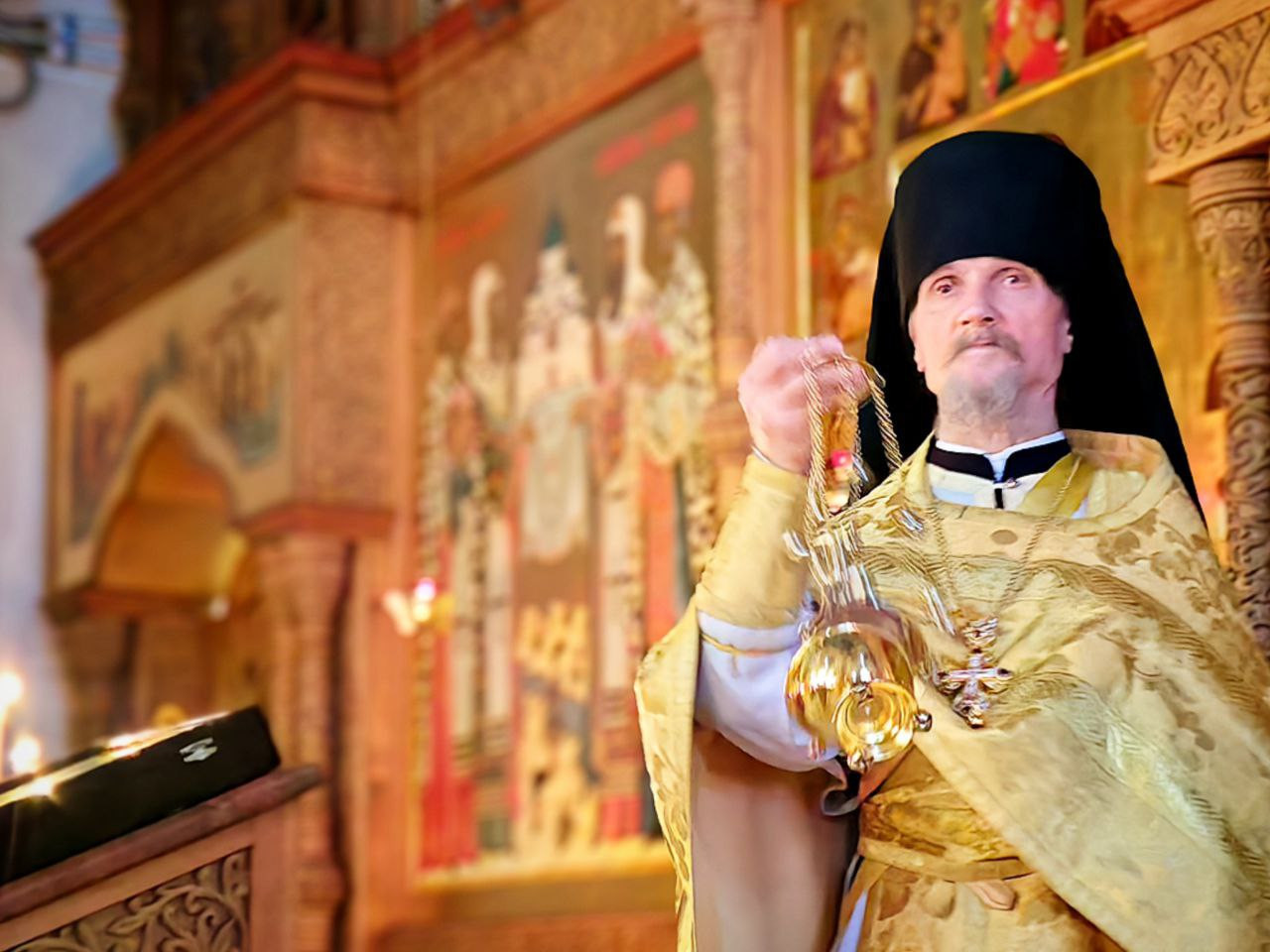 Обратившись к присутствующим в храме со пастырским словом, наместник обители поздравил собравшихся с воскресным днем, причастников — с принятием Святых Христовых Таин.