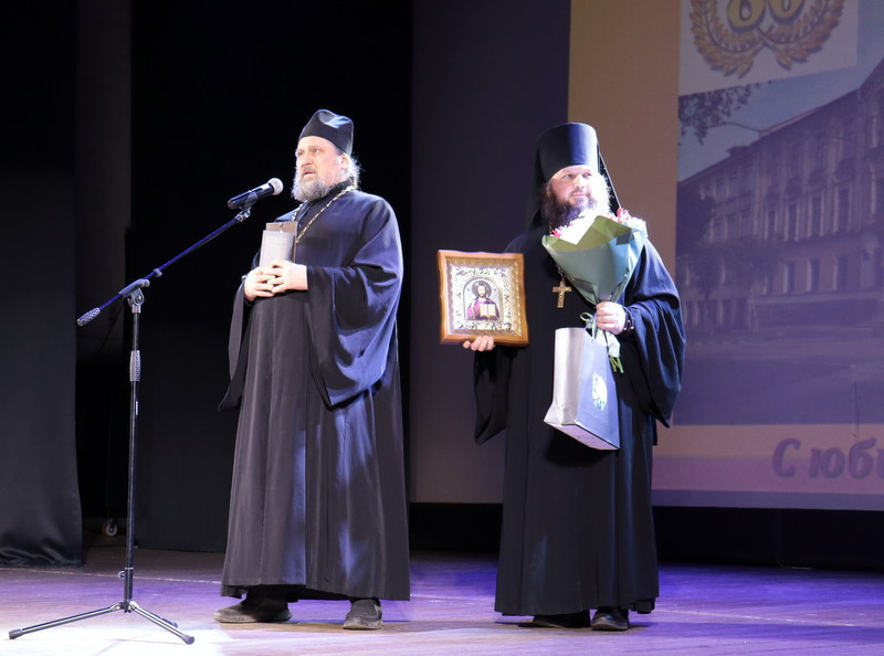 От лица братии монастыря и Фонда возрождения обители со словами поздравления к участникам юбилейного торжества обратился наместник Старицкой обители игумен Дамаскин (Леонов), который поздравил участников торжеств с юбилеем и зачитал поздравление от Фонда возрождения монастыря. В своем поздравлении наместник обители обратил внимание, что колледж располагается в здании бывшего Старицкого духовного училища. Как и много лет тому назад, те кто в нем работают, продолжают сеять разумное, доброе, вечное...