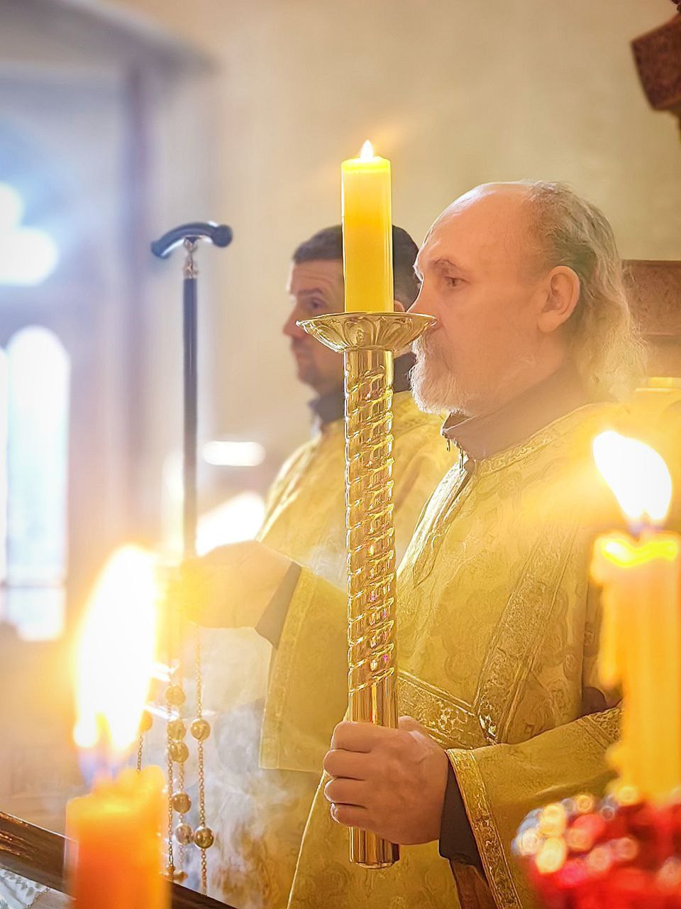 Обратившись к присутствующим в храме со пастырским словом, наместник обители поздравил собравшихся с воскресным днем, причастников — с принятием Святых Христовых Таин.