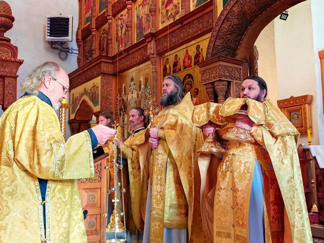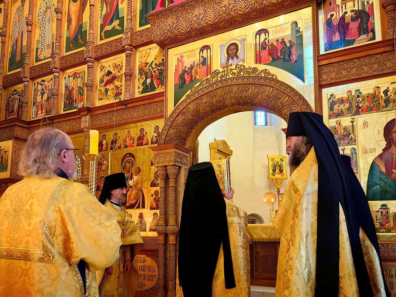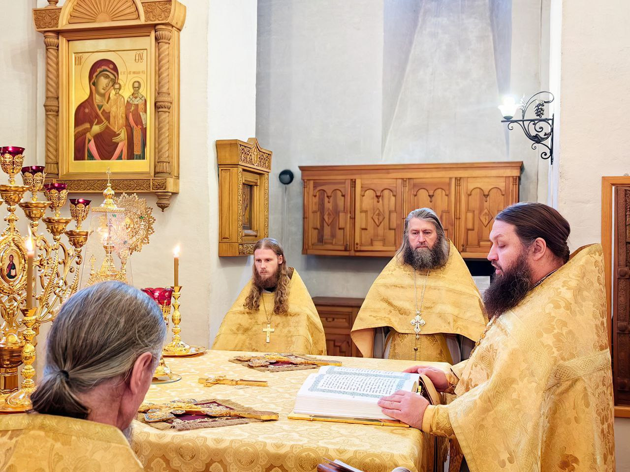 В Успенском соборе монастыря наместник обители игумен Дамаскин (Леонов) возглавил Божественную литургию. Ему сослужили иеромонах Нектарий (Андреев), иеромонах Вениамин (Веселов) и иеромонах Филарет (Гавщук).