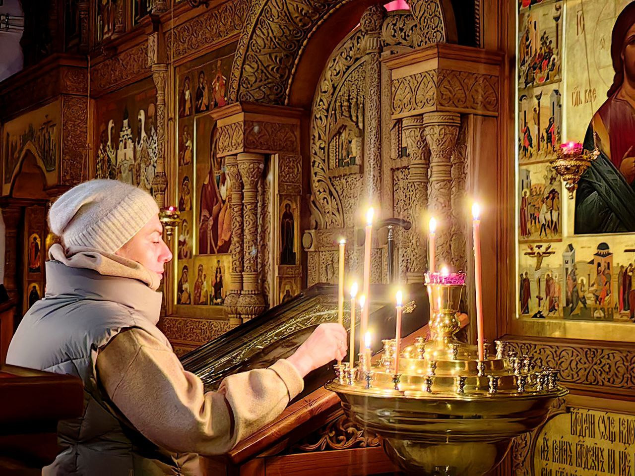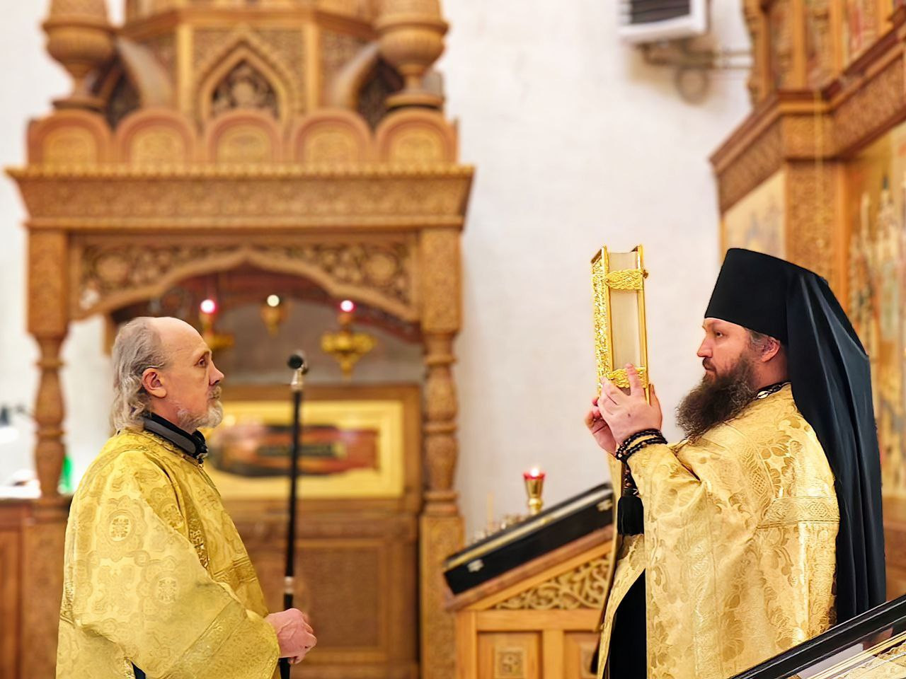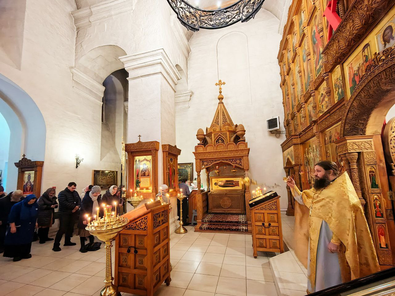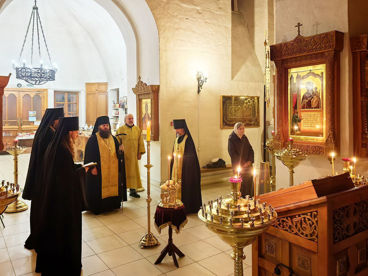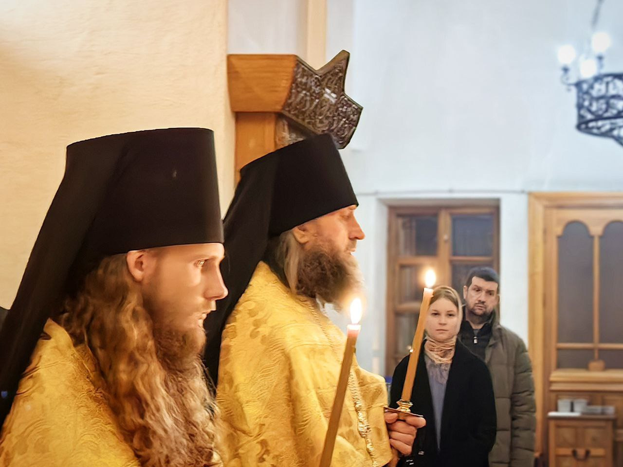 Накануне наместник, братия и прихожане монастыря молились за Всенощным Бдением.