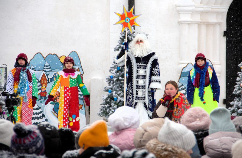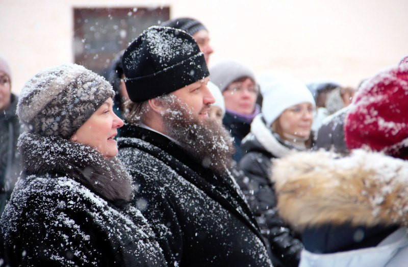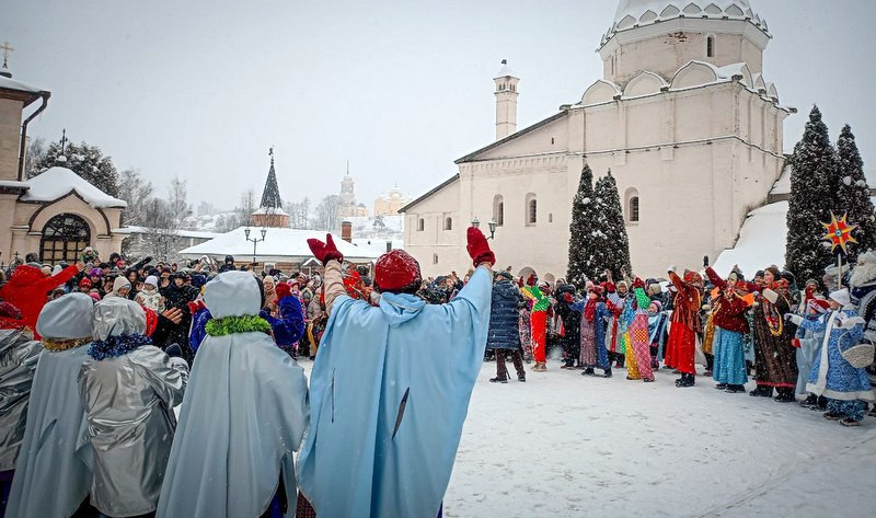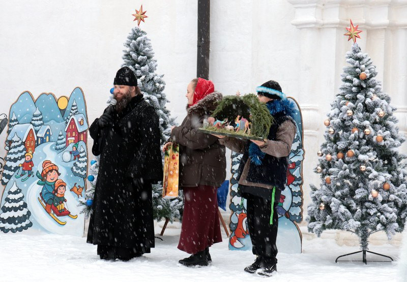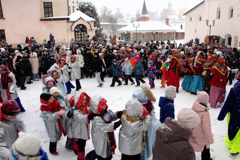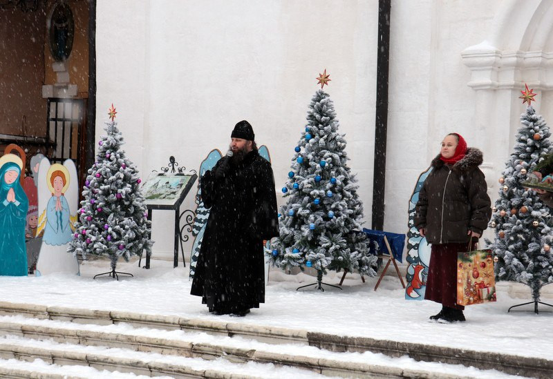 Ровно в полдень 7 января 2026 года на площади перед Успенским собором обители собрались юные и врослые старичане, гости и паломники монастыря.