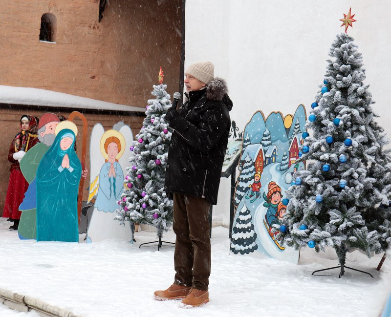 Перед началом праздника участников тепло приветствовал наместник Старицкого монастыря игумен Дамаскин (Леонов). Он отметил, что Рождество Христово — праздник особый, пронизанный миром и светом и с отеческой любовью пожелал деткам и их родителям здоровья, счастья, семейного тепла и благополучия.