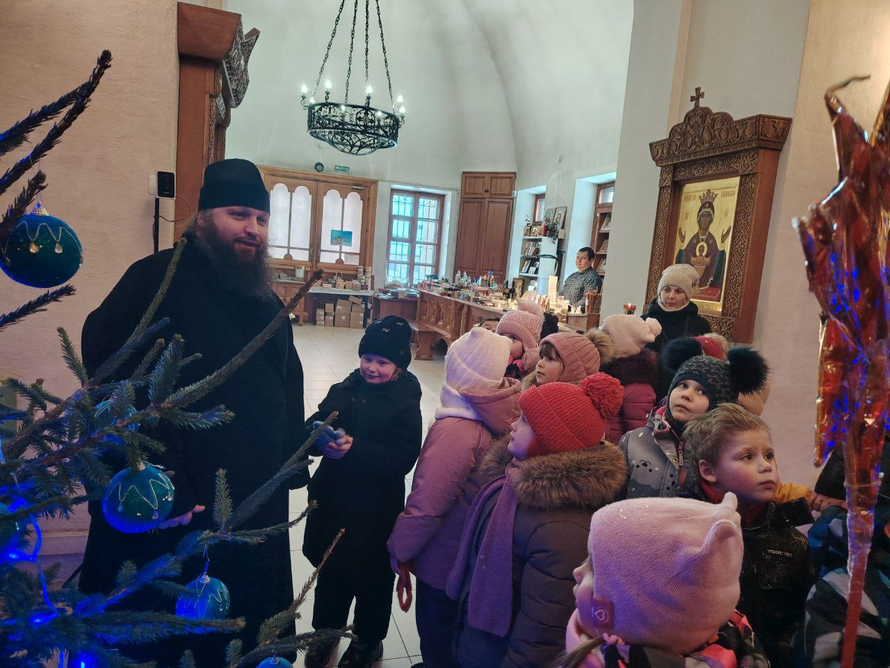 Для ребят была организована экскурсия. Наместник монастыря игумен Дамаскин (Леонов) познакомил детей с историей празднования Рождества Христова, продемонстрировал традиционный рождественский вертеп и подробно объяснил историю праздника Рождества Христвоа.