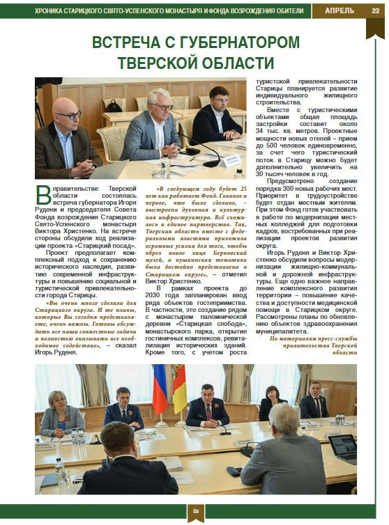 В начале 2026 года вышел в свет 18-й выпуск ежегодного альманаха Фонда возрождения Старицкого Свято-Успенского монастыря. Его страницы посвящены значимым датам и важным событиям, произошедшим в жизни Старицкой обители. Альманах предваряет вступительное слово священноархимандрита обители — митрополита Тверского и Кашинского Амвросия и наместника монастыря игумена Дамаскина (Леонова), приветствие председателя Совета Фонда В.Б. Христенко.