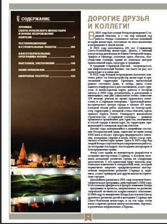 Страницы нового издания рассказывают о значимых событиях и памятных датах, пережитых монастырем за минувший год. Читатели смогут познакомиться с новыми материалами о святынях и традициях древней обители, узнать подробности реставрации старинных построек и обновления инфраструктуры обители.