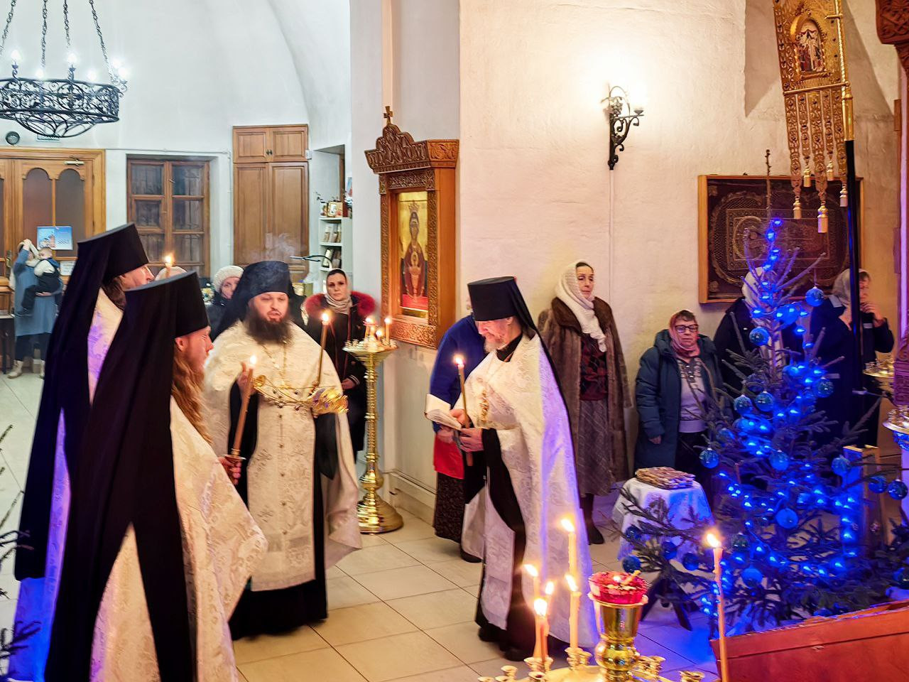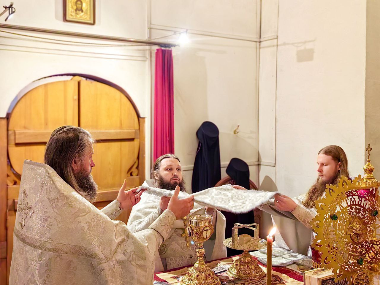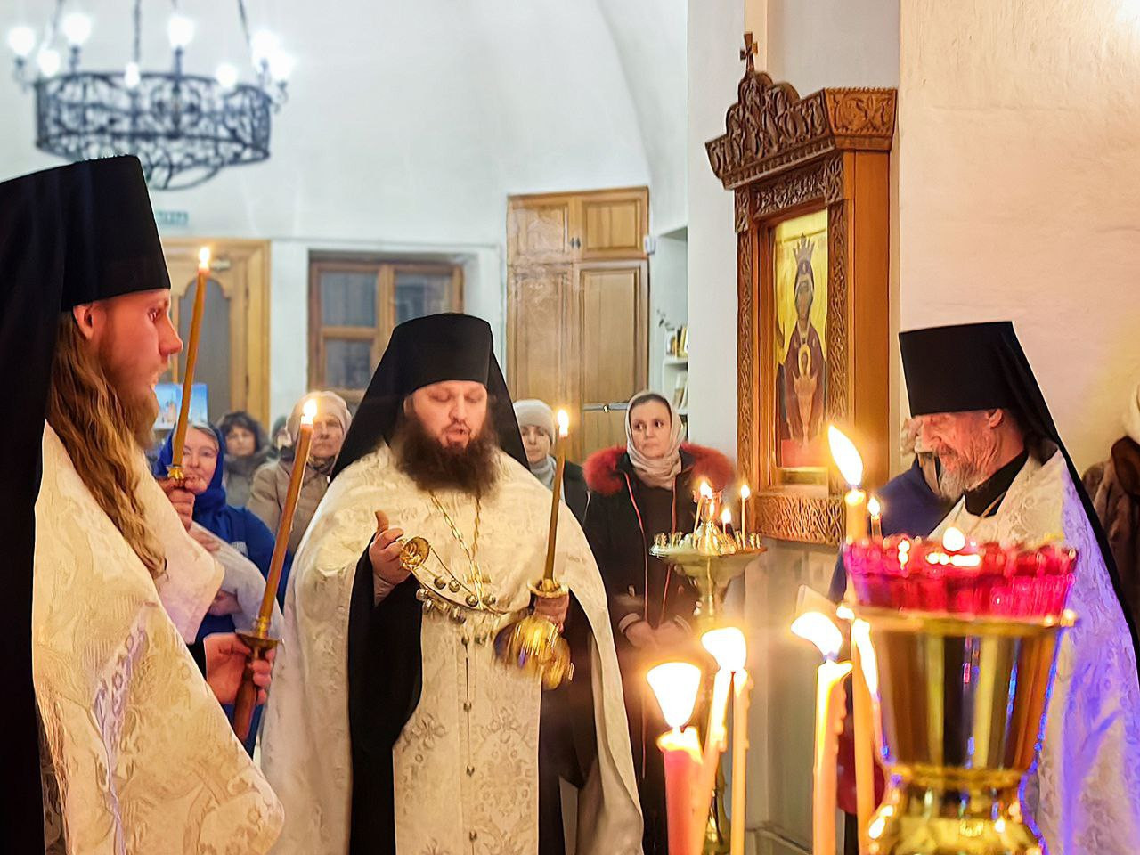 Накануне вечером наместник и братия совершили в монастыре торжественное Всенощное Бдение с литией.
