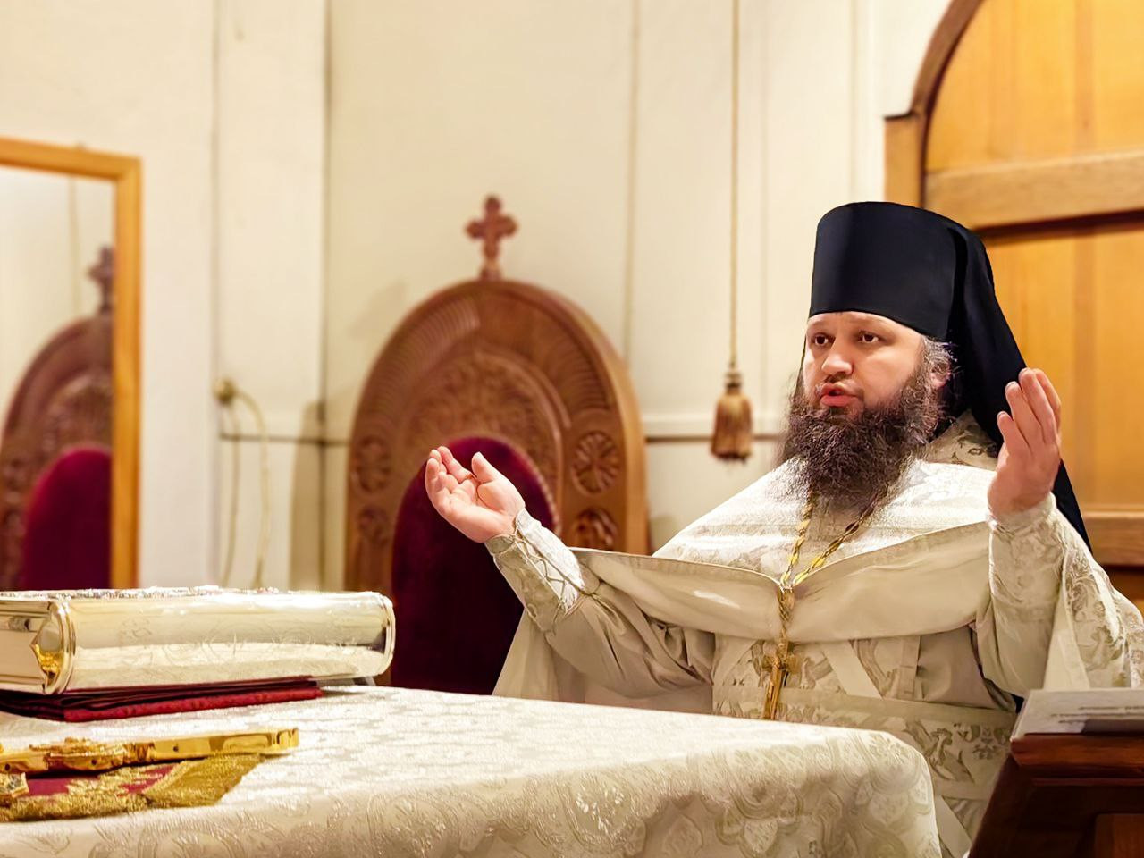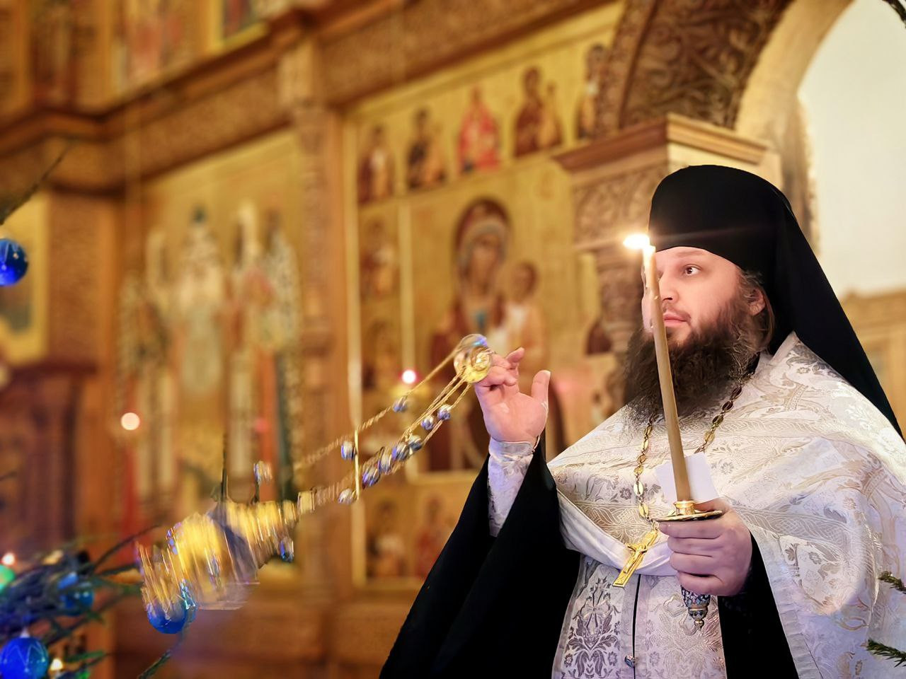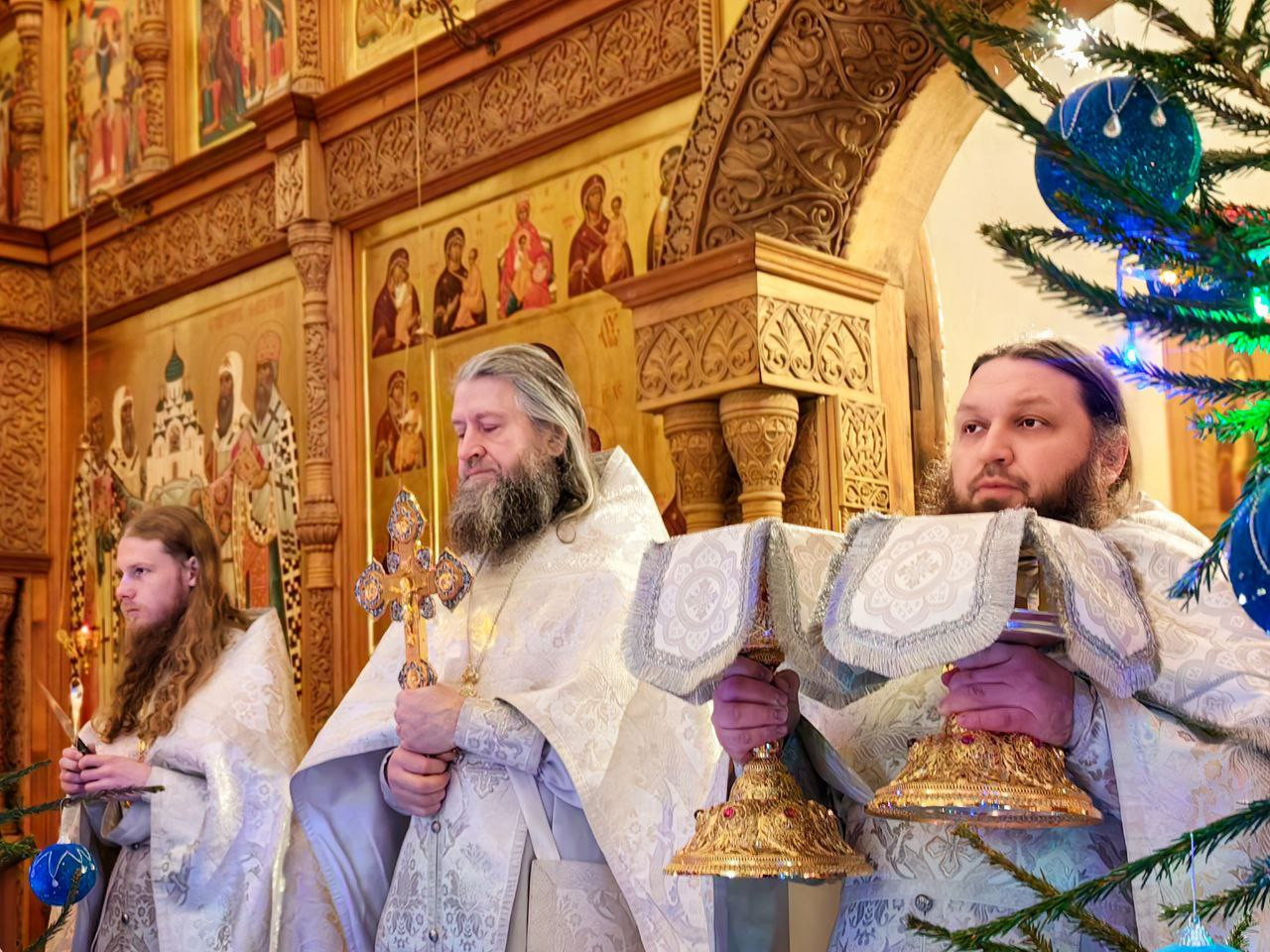 Накануне вечером наместник и братия совершили в монастыре торжественное Всенощное Бдение с литией.