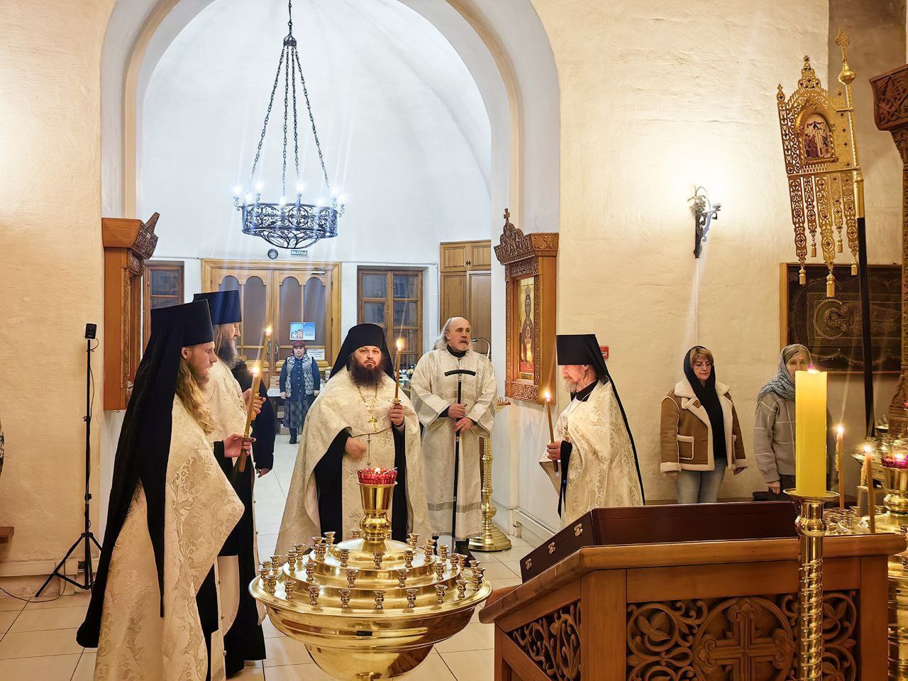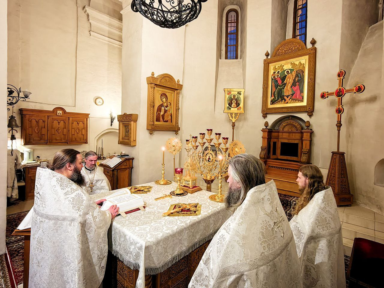 Божественную Литургию в Успенском соборе монастыря совершил наместник обители игумен Дамаскин (Леонов). Ему сослужили братия монастыря иеромонах Нектарий (Андреев), иеромонах Вениамин (Веселов) и иеромонах Филарет (Гавщук).