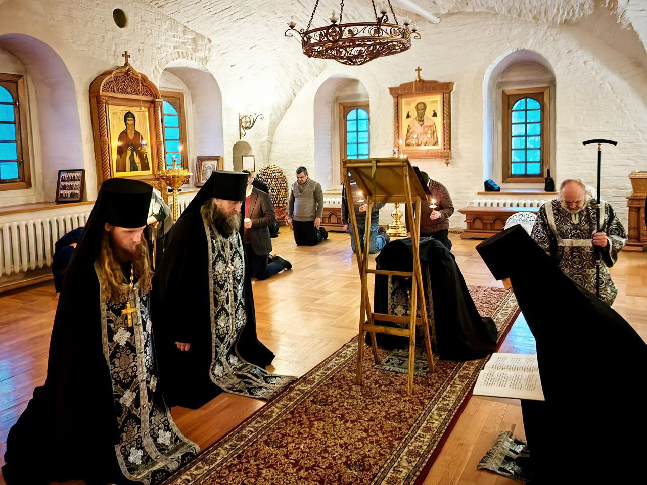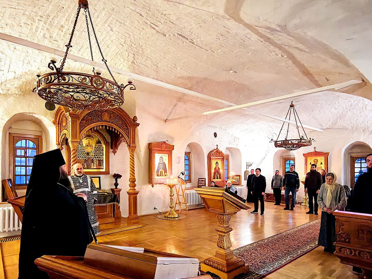 Вечером наместник обители игумен Дамаскин (Леонов) в сослужении братии монастыря иеромонаха Нектария (Андреева), иеромонаха Вениамина (Веселова) и иеромонаха Филарета (Гавщука) совершил чтение заключительной 4-й части Великого покаянного канона прп. Андрея Критского.