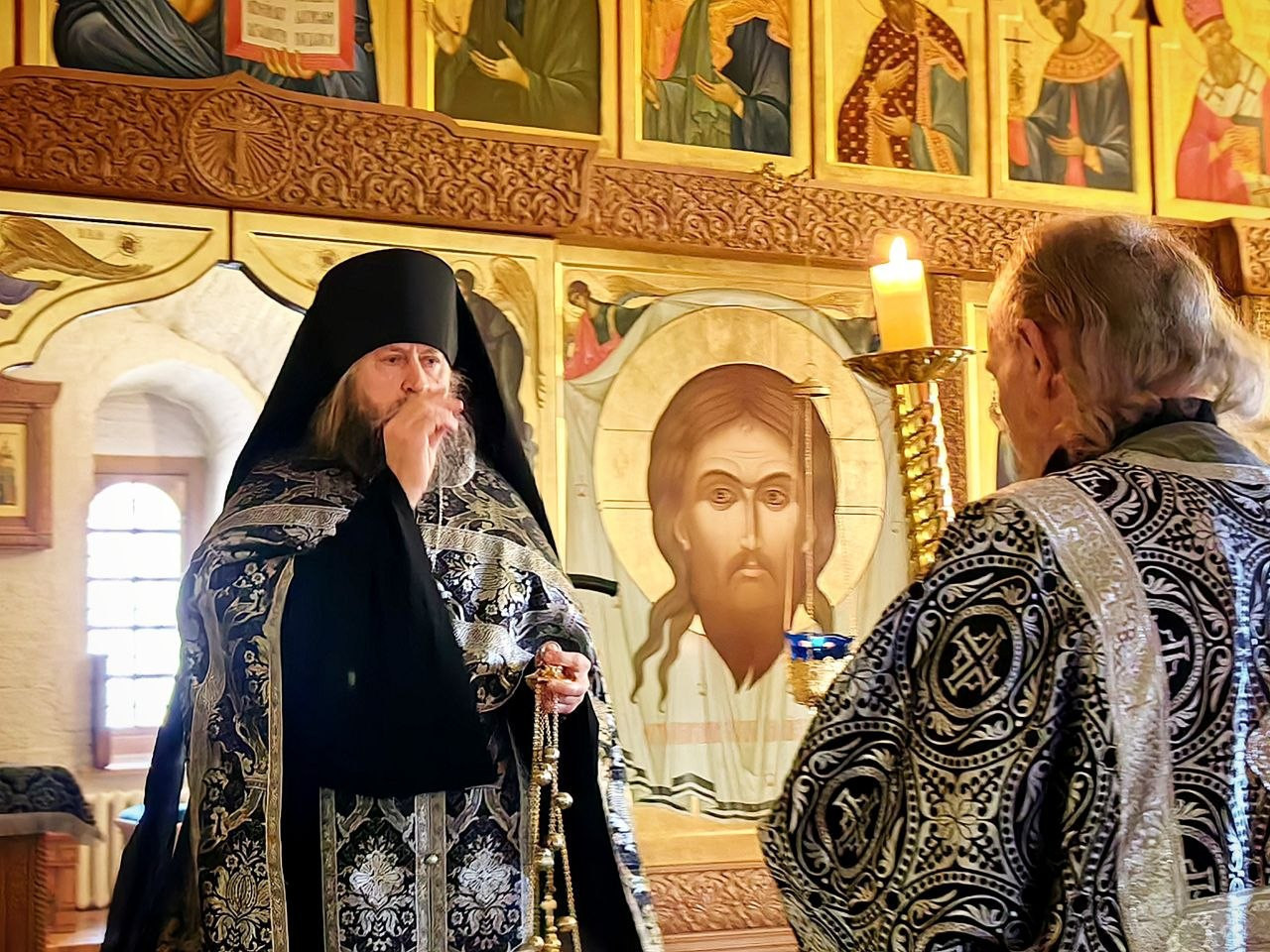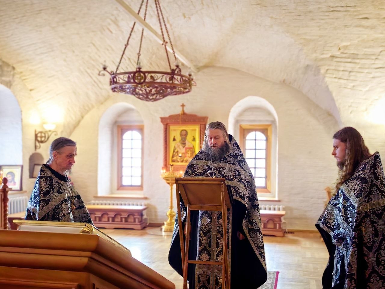 Богослужение совершил насельник обители иеромонах Нектарий (Андреев). Ему сослужили иеромонах Вениамин (Веселов) и иеромонах Филарет (Гавщук).