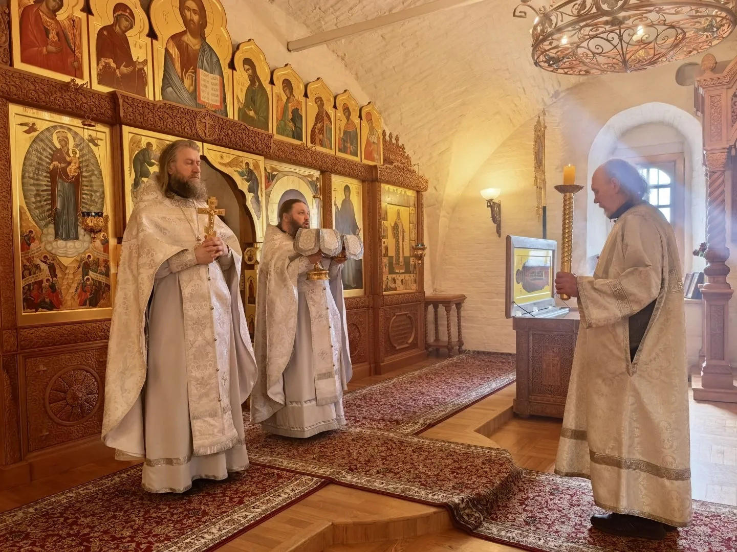 4 апреля 2026 года, Православная Церковь воспоминает чудо воскрешения Христом праведного Лазаря. В этот день в Старицком монастыре совершили Божественную литургию в храме Введения во храм Пресвятой Богородицы. Богослужение возглавил наместник обители игумен Дамаскин (Леонов). Ему сослужил иеромонах Нектарий (Андреев).