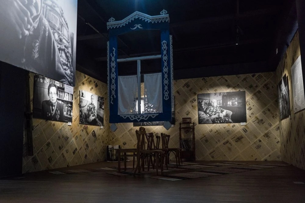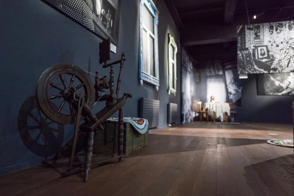 Интересно, что фото не просто размещены на стенах — вокруг воссоздан интерьер городского или сельского частного дома — наличники, половики, полотенца, другие предметы быта. В «настроение» вовлечено все, даже стены, оклеенные обоями в цветочек или старыми газетами. Это дает возможность полного погружения в дела и быт наших земляков.