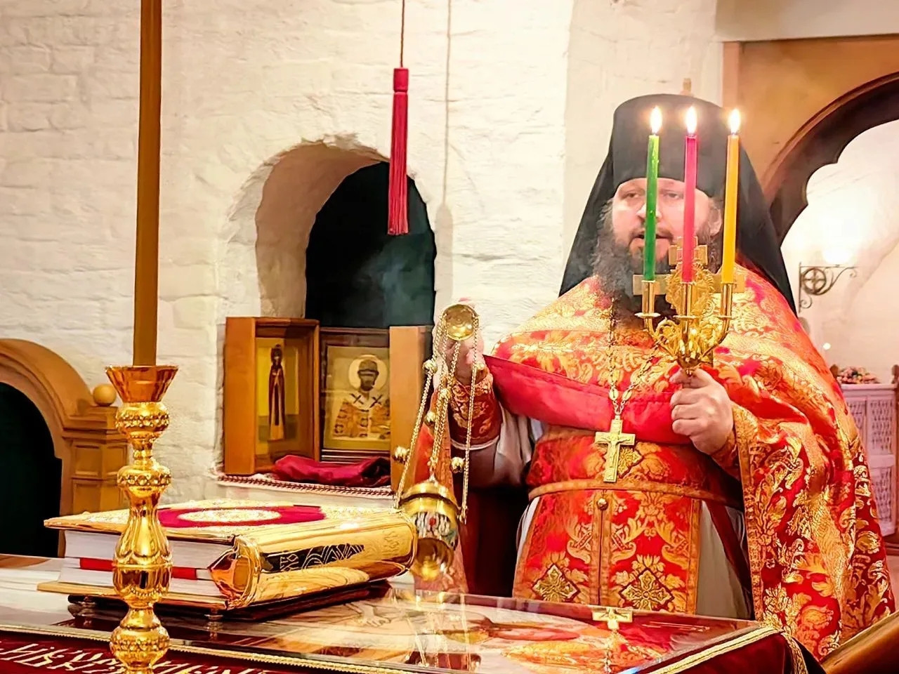 Богослужения возглавил наместник обители игумен Дамаскин (Леонов). Ему сослужили братия монастыря иеромонах Нектарий (Андреев), иеромонах Вениамин (Веселов) и иеромонах Филарет (Гавщук).
